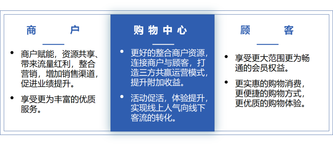 线上平台的建立,让购物中心成为了新的流量入口,如同在线上再建了一个购物中心。各品牌商户可以触达购物中心引流的广大顾客,而品牌顾客也进一步反哺了购物中心平台流量,双方相互促进,从而达到了存量中转化增量,增量中拉动存量的效果。