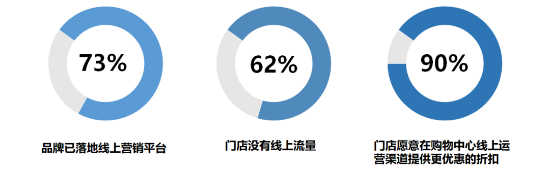 而在商户的配合上,由于很多品牌自身已有线上商城,部分购物中心对于品牌商户是否愿意配合开展线上经营存在着一定的顾虑。然而,根据权威调查机构最近出具的一份调查数据显示73%的品牌已经落地了线上营销渠道,但是半数以上的企业由于线上线下分立经营,导致这些实体门店并未享受到线上流量带来的红利,尤其是在本年突发情况的推动之下,90%的品牌门店愿意参与甚至愿意在购物中心的线上渠道提供更优惠的折扣。
